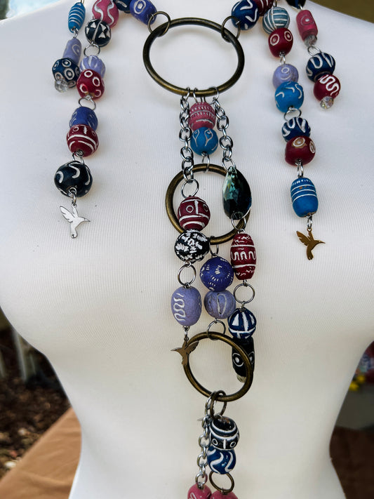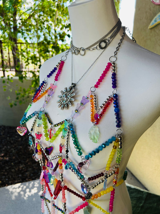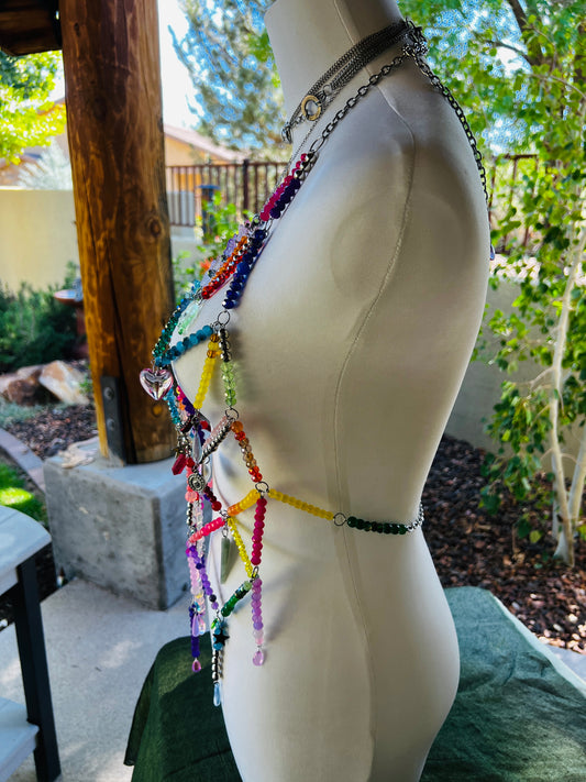 Prism Priestess Body Armor - Beaded Harness + Reclaimed Necklace Stack + Earrings