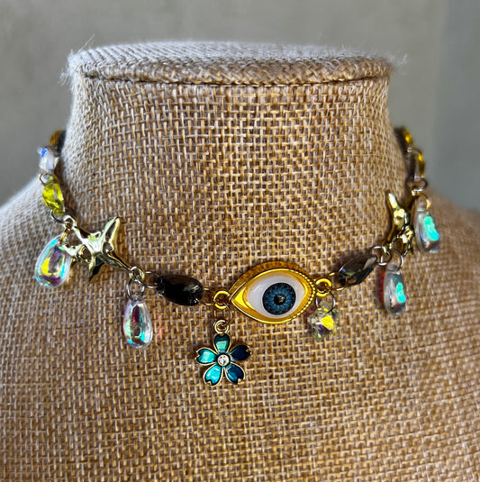 Warm Water Sea Witch - 4 Piece Set - Seashell Collar + Crystal Choker + Cosmic Drip Chain + Earrings