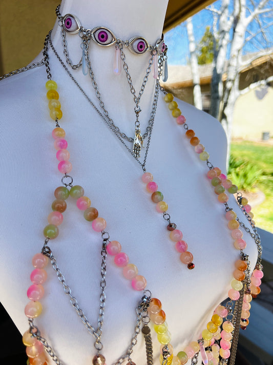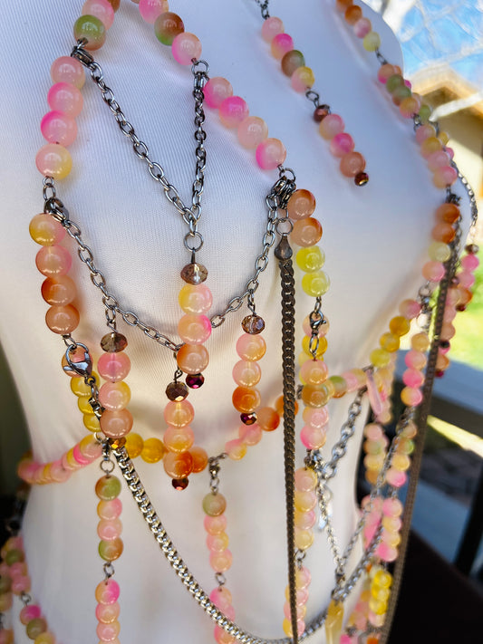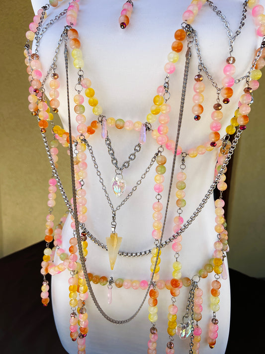 Sol on Fire - Glass Beaded Harness + Belt + Choker + Drip Chain - Full Body Regalia