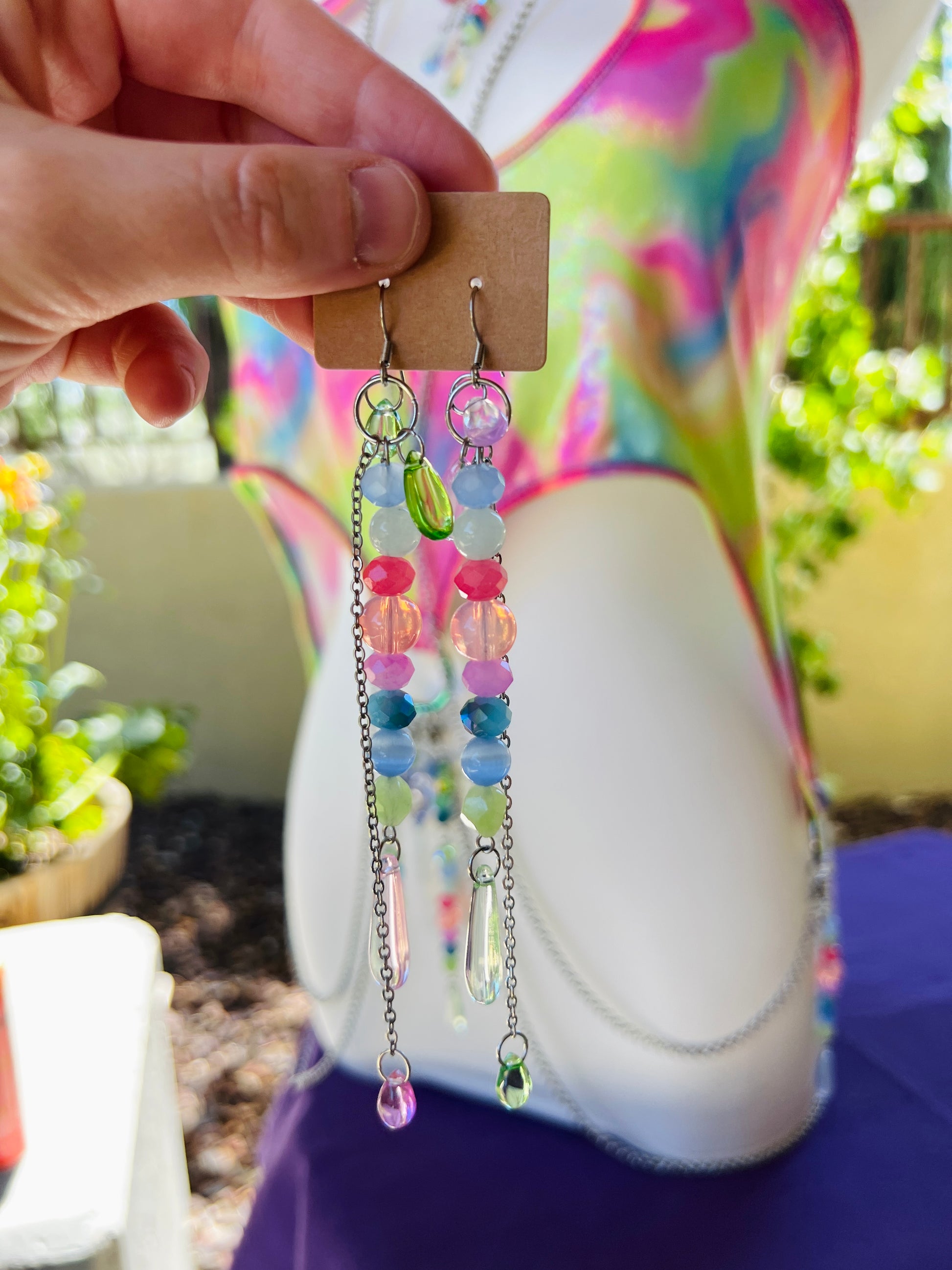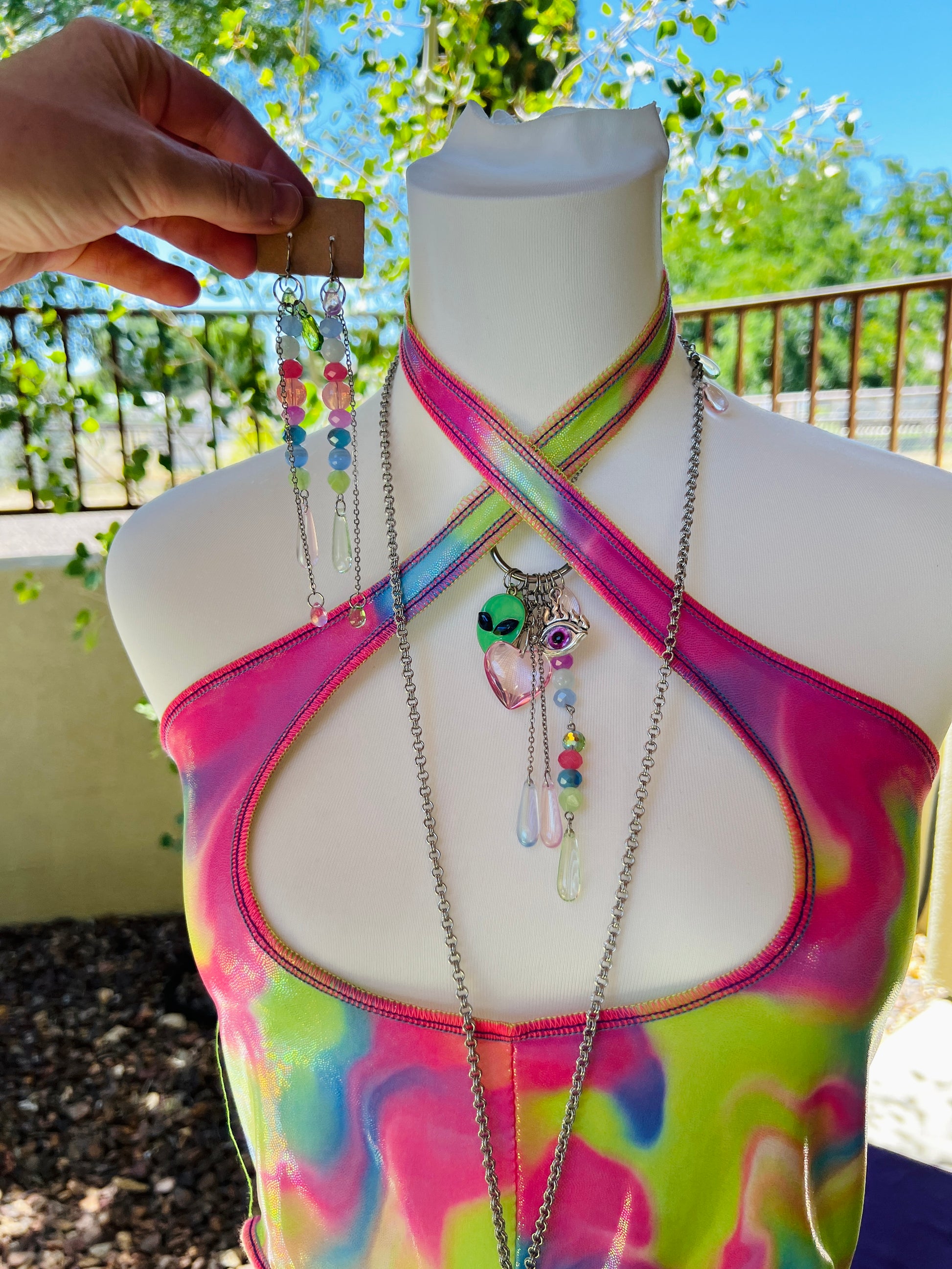 Cosmic Slap Beaded Halter Top - Mr.Wacko Collaboration - size Medium spandex Halter Top + earrings + removable chains & charms + cosmic drip chain