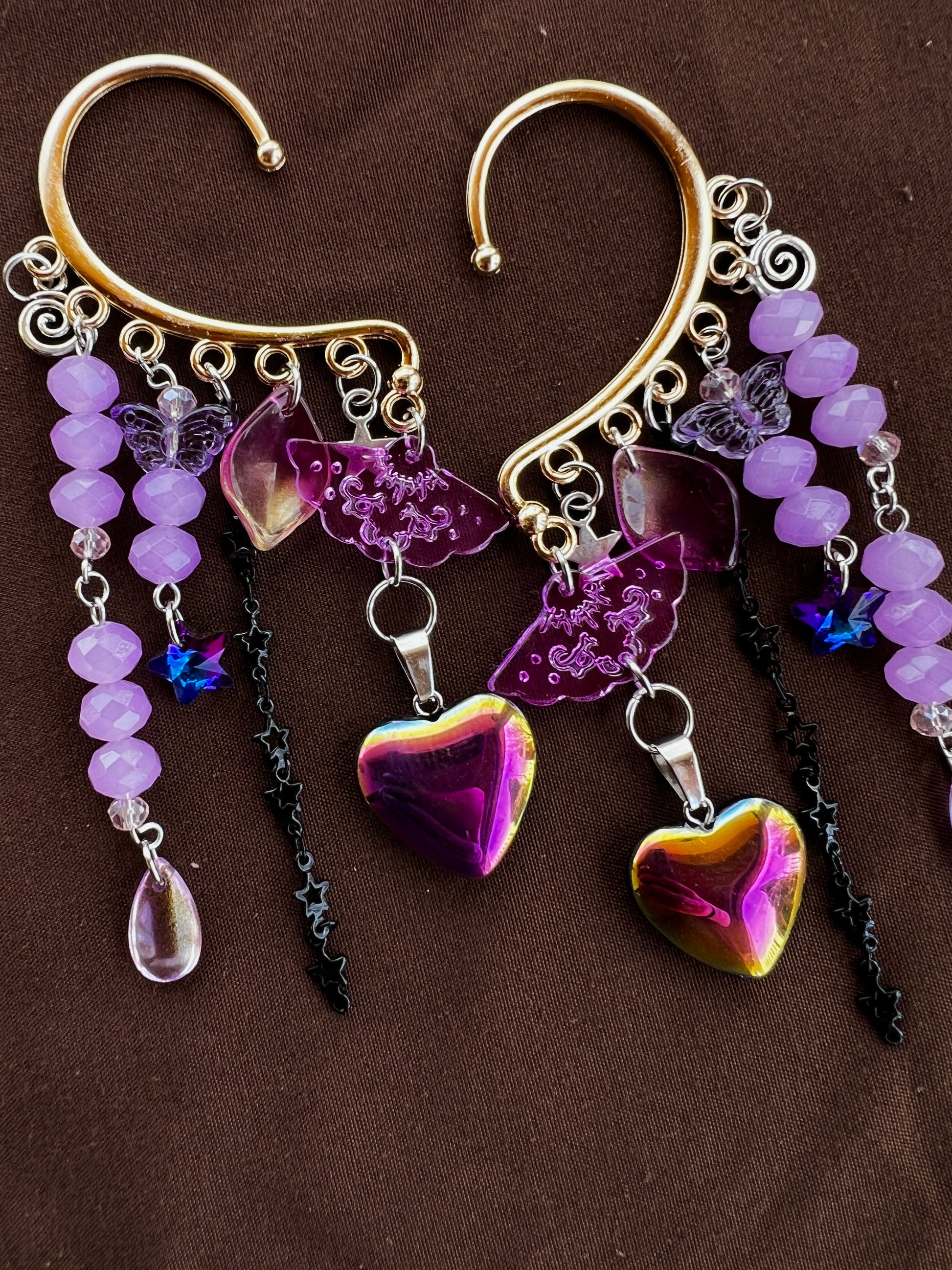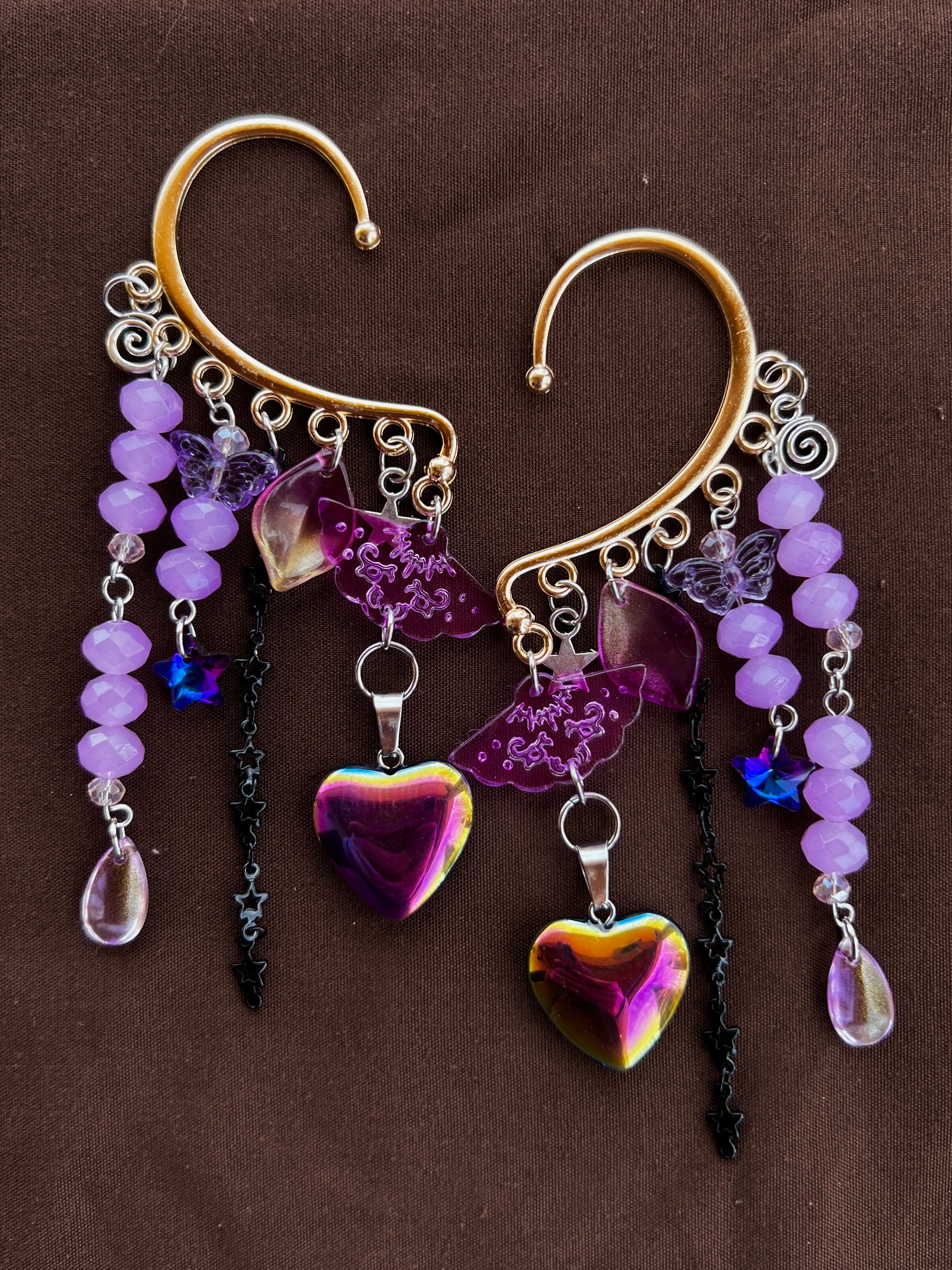 - size S-M ears - gold plate hooks - glass beads - steel, silver plate and glass charms - stainless steel hardware and chain