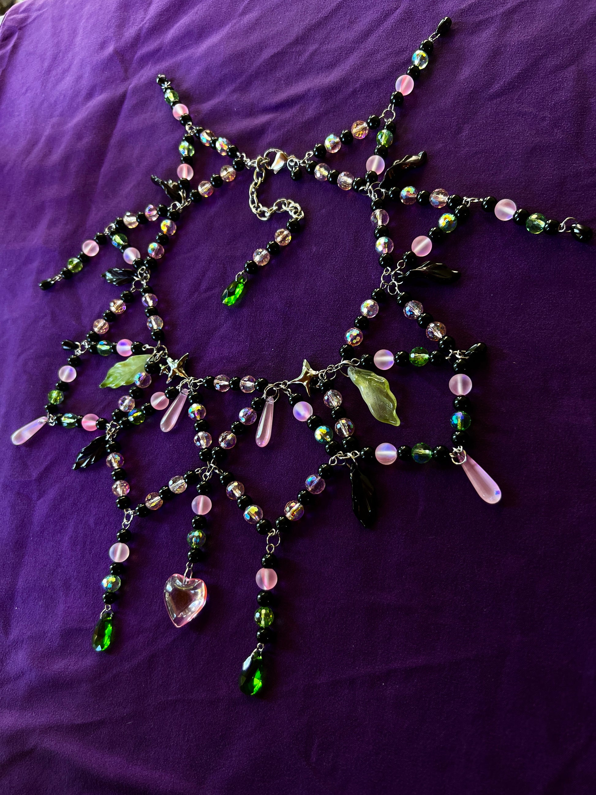 - 15-18 inches - glass and stone beads - stainless steel chain and hardware - adjustable sizing - glass and steel charms