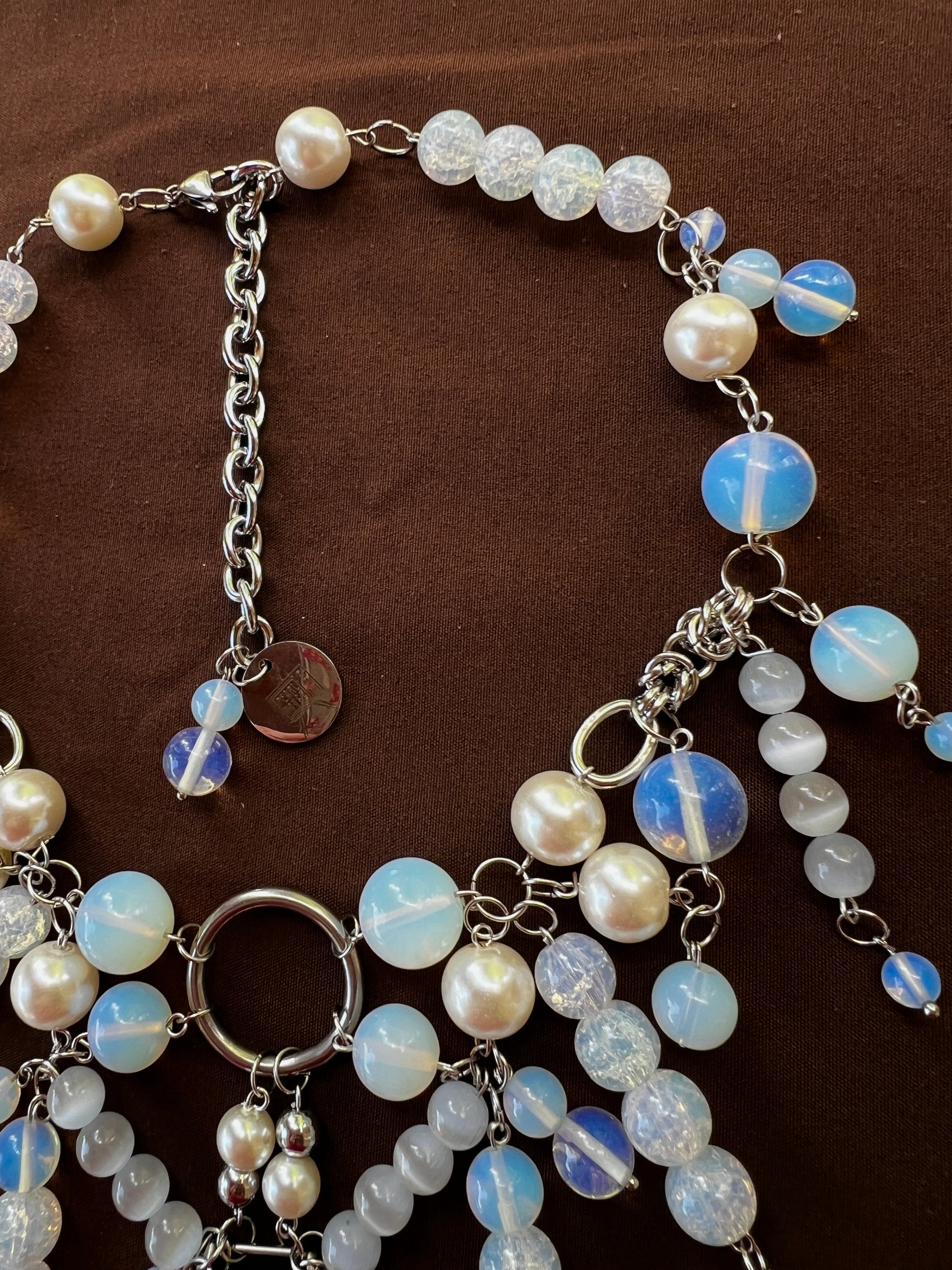 - 15-18 inches - stainless steel chain and hardware - glass and metal beads - stainless steel and glass charms - vintage reclaimed glass pearls