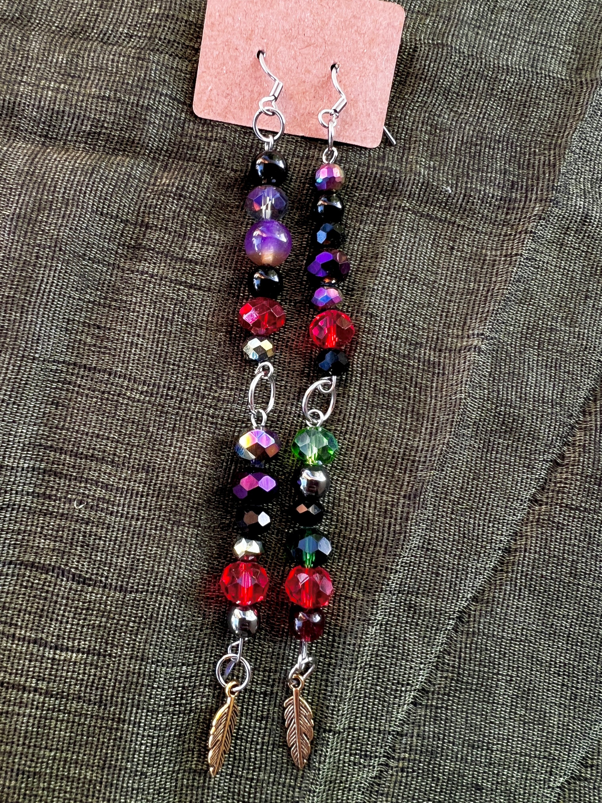 - stainless steel hardware and hooks - 3.5 inches - steel charms - glass beads