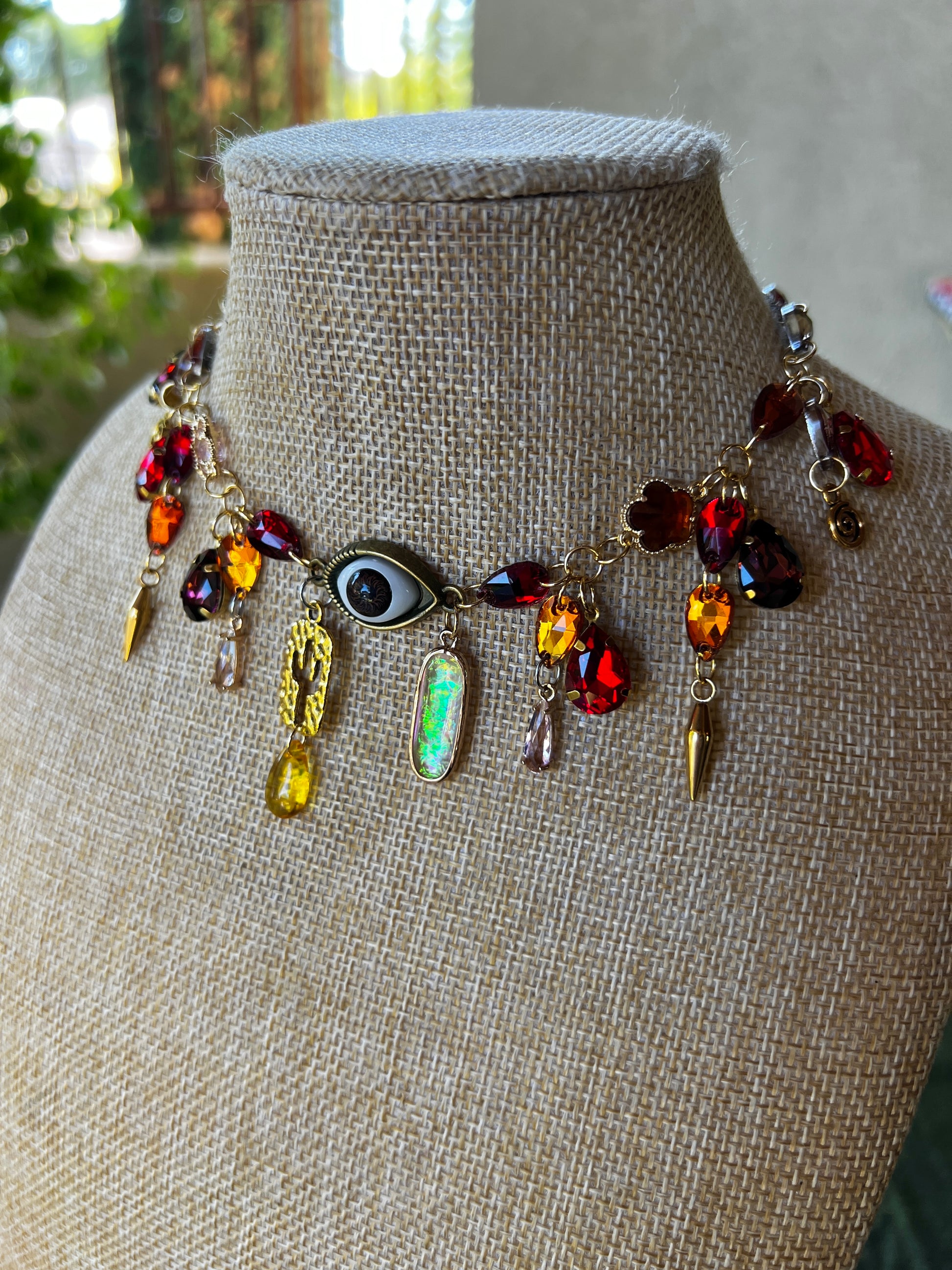 - 12.5-14 inches - glass crystals - stainless steel chain and hardware - glass, gold plate and stainless steel charms