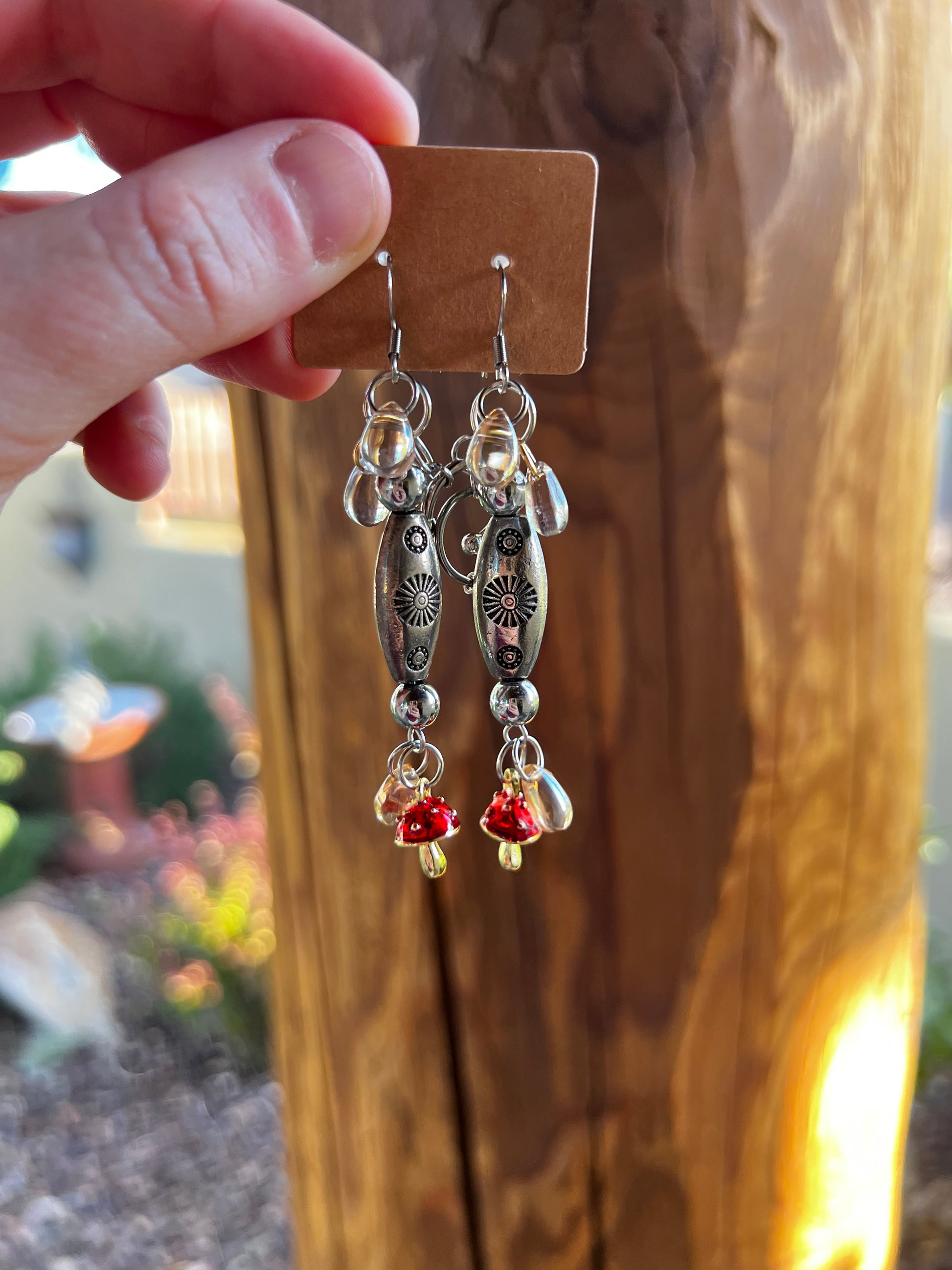 - stainless steel hardware and hooks - 2.5 inches - steel and glass charms - glass and silver beads - new and reclaimed charms