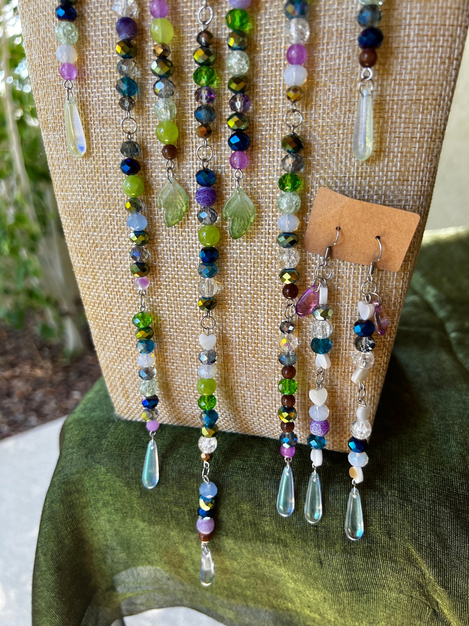- 16-19 inches - glass and stone beads - stainless steel chain and hardware - adjustable sizing - glass and steel charms