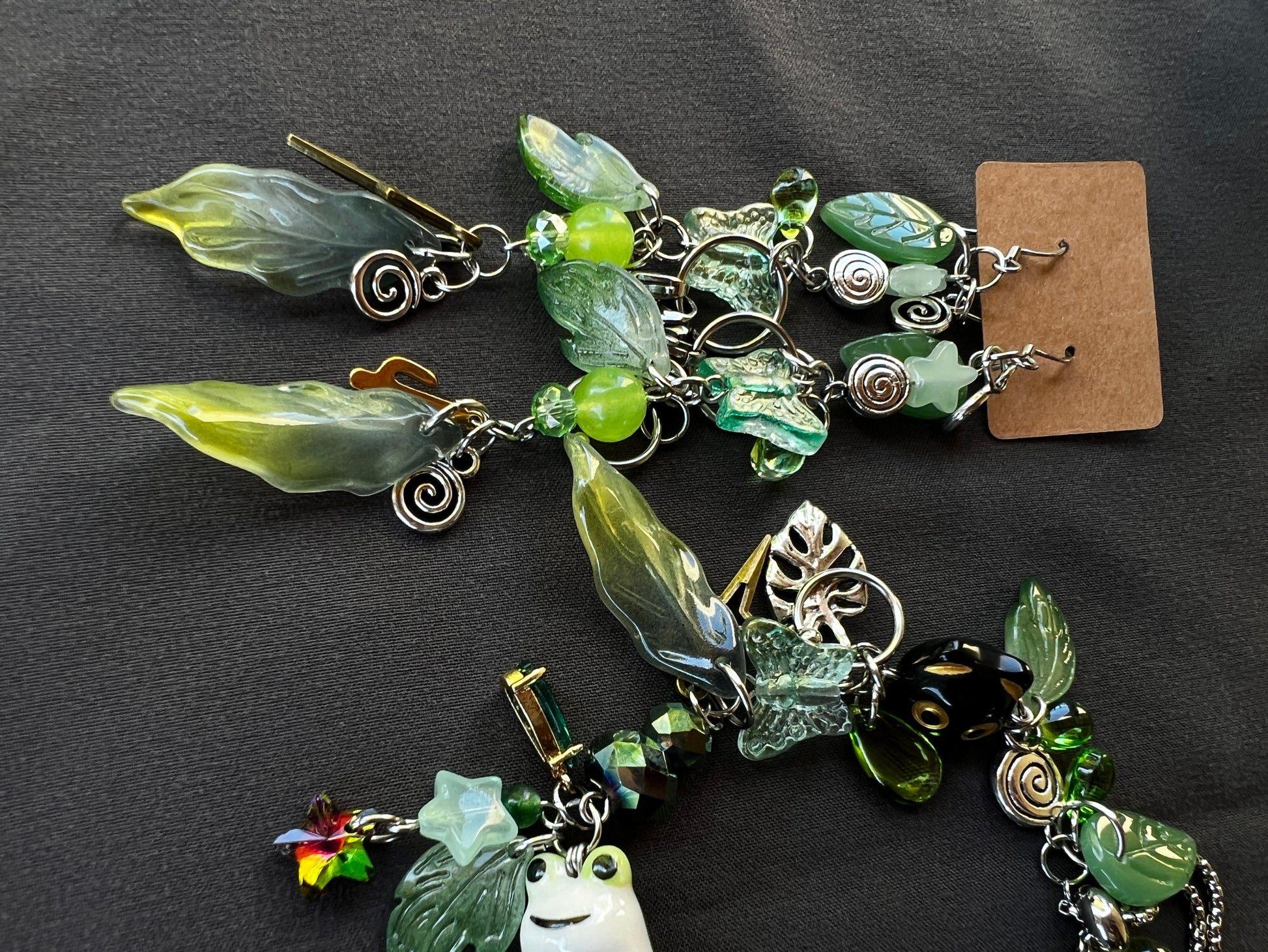 - glass, brass, gold plate and stainless steel charms