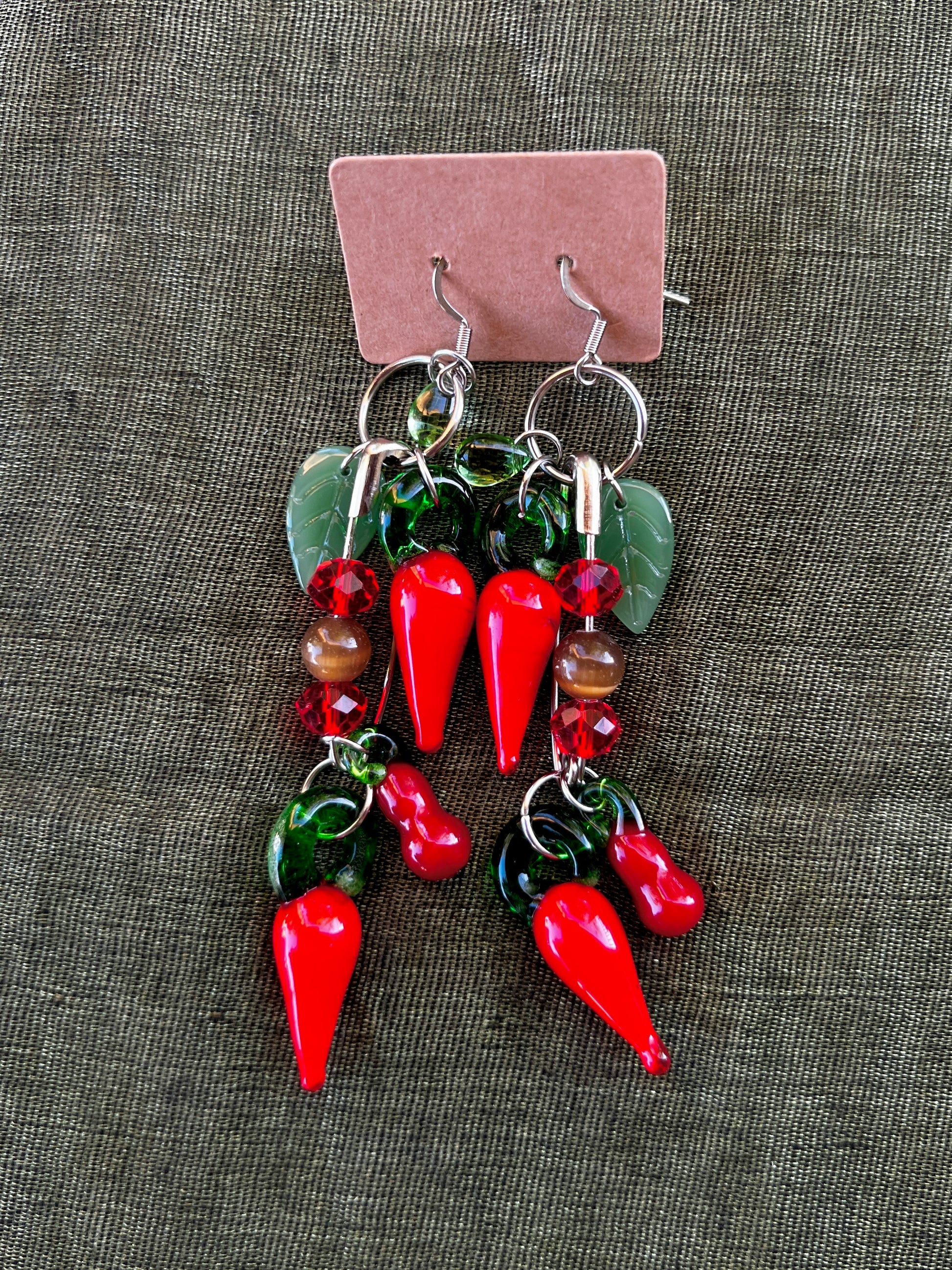 - stainless steel hardware and hooks - 3 inches - steel, glass and plated charms - glass beads - new and reclaimed charms