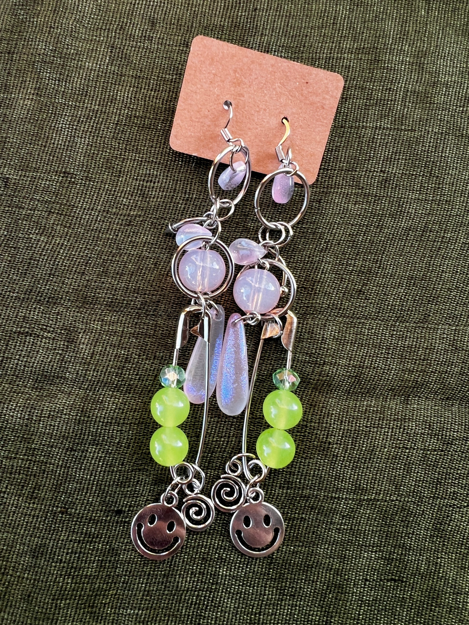 - stainless steel hardware and hooks - 4.5 inches - steel, glass and plated charms - glass beads - new and reclaimed charms